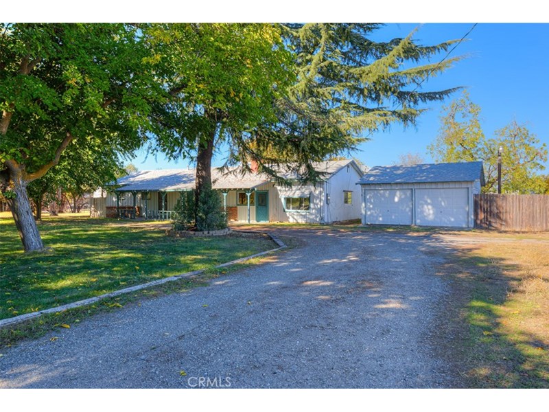 Wonderful level ranch home nestled on a large 2.5 acre lot surrounded by other acreage properties in a quiet rural setting yet only minutes to all services and the center of Corning!! The home offers 2 beds and 1 bath on one side of the home with garage conversion making a guest suite set up on the other side which is ideal for an extended stay family member or guest, making 3 beds and 2 baths total. There is an additional bonus room off the front entry which would make a perfect home office set up as well. This home has noticed some improvements over the years with newer flooring and bath remodel, many updated windows and fixtures, along with a newer central HVAC unit. There is a detached 2 car garage which used mainly for work shop and tools, which offers many uses or just to park cars in. Home sits well back off Loleta Ave with abundance of large mature shade trees and lawn area, along with a great covered front porch to relax on and enjoy your peace and quiet. The large open kitchen and dining area is great for family gatherings or just elbow room. A huge living room overlooking the serene front yard is completed with a warm fireplace for chillin on a cool evening. The primary suite has large walk in closet, full bathroom and it's own private door to exterior as well. With 2.5 acres of level land many options could be had, from adding a nice shop, a secondary dwelling, barn or animals, or maybe even small orchard, as plenty of water from your own well flows to service anything. If you're looking for solid level ranch home with so much potential in a serene setting, this one may just be it for you!!